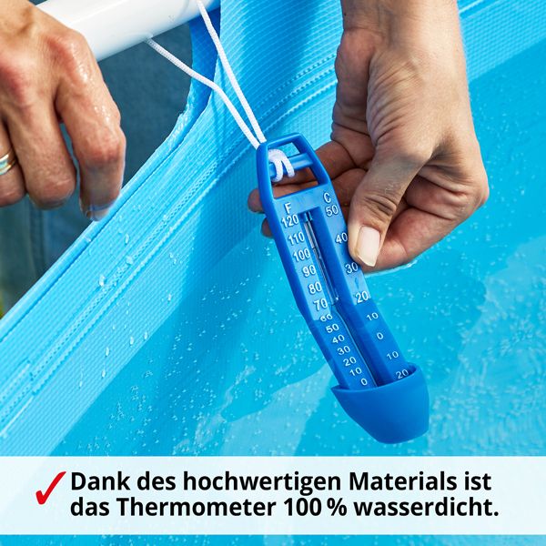 - Mit reißfestem Band zur sicheren Befestigung am Beckenrand oder an der Leiter