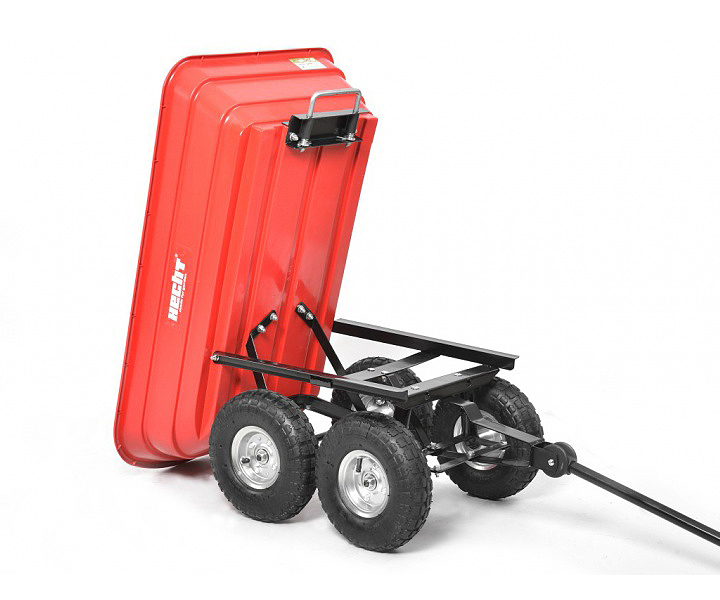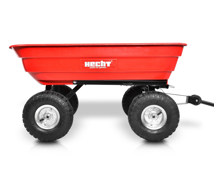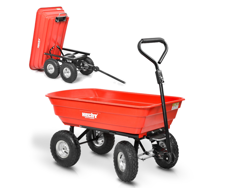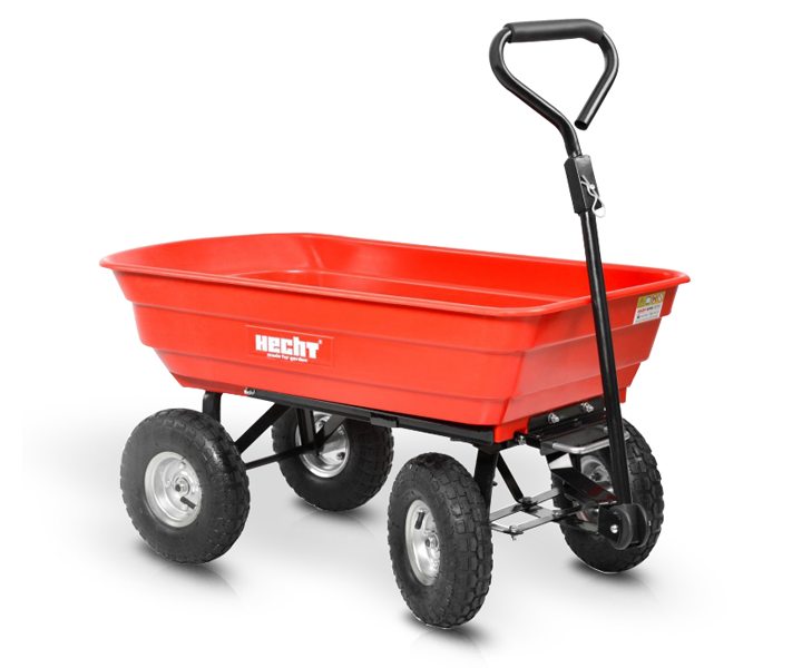 Der Hecht 52145 ist ein kippbarer Transportwagen mit Anhängervorrichtung, Luftbereifung und für eine Zuladung von bis zu 250 kg ausgelegt.