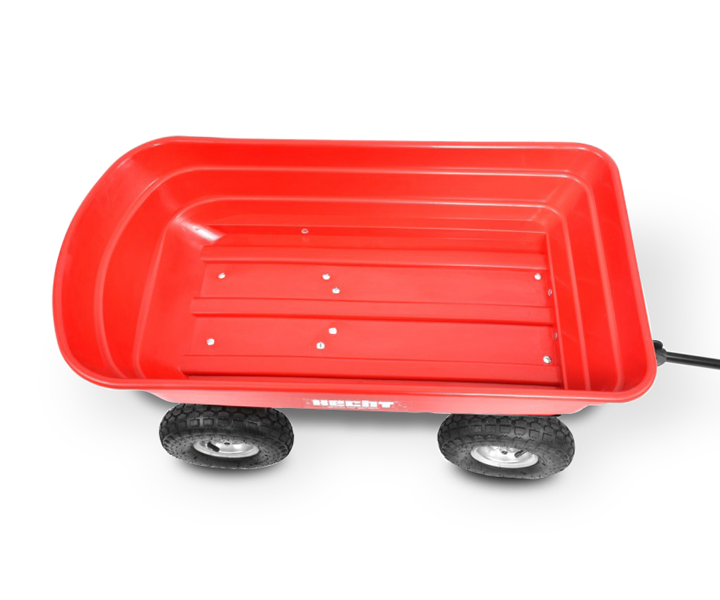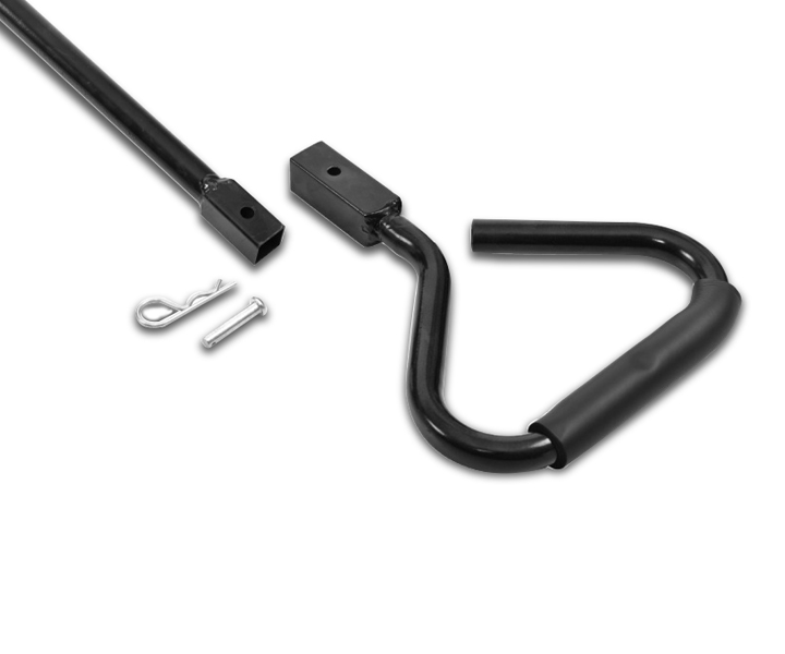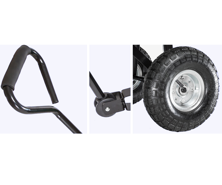 Der ergonomische Griff ist gummiummantelt und lässt sich mühelos bewegen und bietet somit einen hohen Komfort und effektiven Einsatz. Der Handgriff ist auch abnehmbar, wodurch ein Kupplungsteil frei wird, mit dem Sie den Wagen an eine Zugmaschine wie zum Beispiel einen Rasentraktor hängen können. So erhalten Sie eine super praktische Anhängerkupplung!